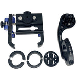 Universal Phone Holder with Garmin Compatible mount. Makes it easy for you to switch between a Garmin Computer and your phone for different rides. Made of aluminum and fits 22mm to 33mm bars. Quick release on and off.